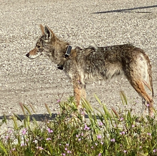 Her name is C-178, identified by her defunct GPS collar. I call her "Mamma" and her boys I named the Brothers Grimm. I am sure you have seen them lounging in the shade after a meal of gophers just below the park entrance on Chesebro. Perhaps they have been spied trotting through your back yard or our neighborhood creeks. This particular brood has been well-integrated to live so close to humans.